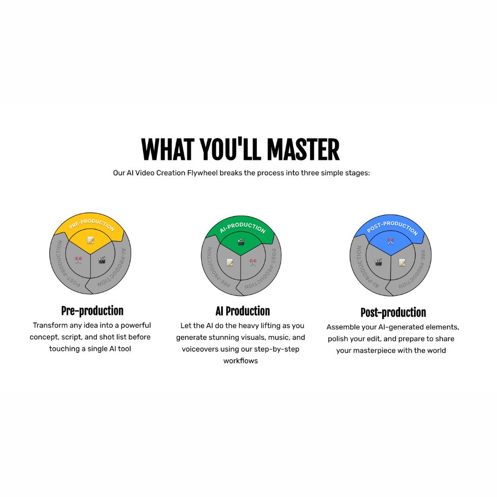 Our AI Video Creation Flywheel breaks the process into three simple stages: