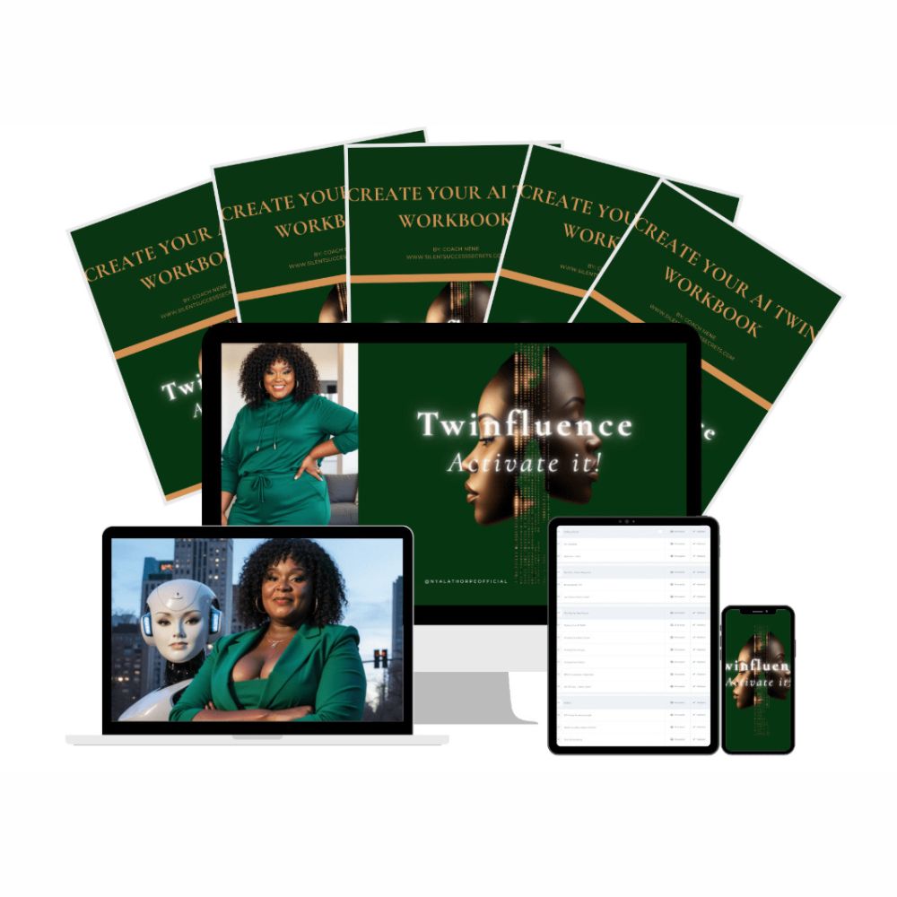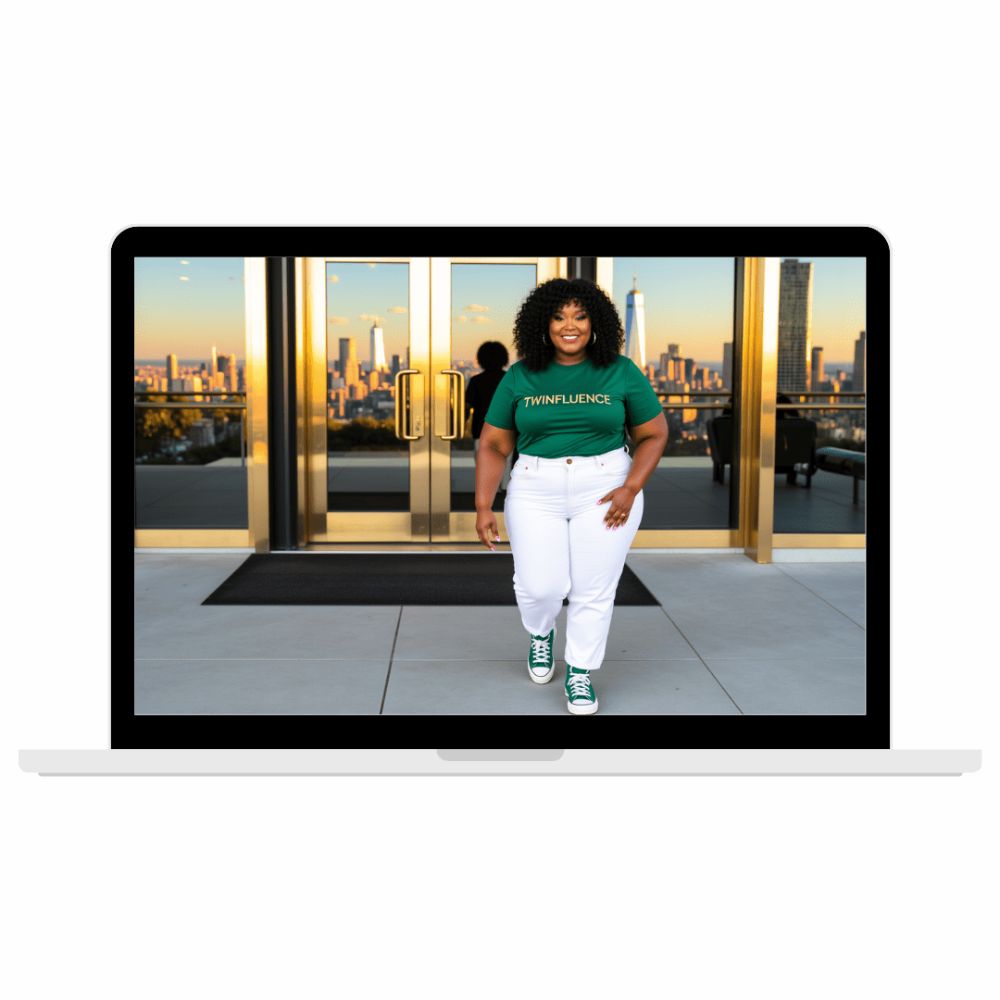 Twinfluence is a self-paced course that teaches you how to train your AI twin to create content that looks like you and shows up for your brand 24/7—so you can finally stay consistent without burning out.